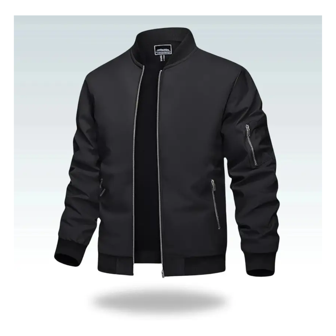 Sporting a range of thoughtful features, this jacket is designed to meet your daily needs. The metal zip closure ensures quick and easy wear, while the full sleeves provide added coverage for cool weather. Two side slant hand pockets with secure zip closures offer convenient storage for your essentials. Additionally, a pen pocket on the sleeve with zip closure provides a unique touch of utility, and the inner pocket is ideal for keeping small valuables safe. Moreover, ribbed cuffs and an elastic waistband provide a snug and tailored fit, while the stand collar enhances the classic bomber look. Also, acting as a windcheater, it offers extra protection during breezy days, which makes it ideal for outdoor use.